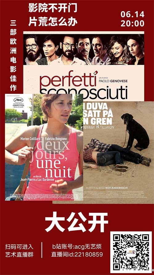 6月14日,无艺烦B站直播间,电影导师带你欣赏三部欧洲电影佳作,用一场电影的时间,体验时间和空间慢慢静止,体会最真实的人性考验。