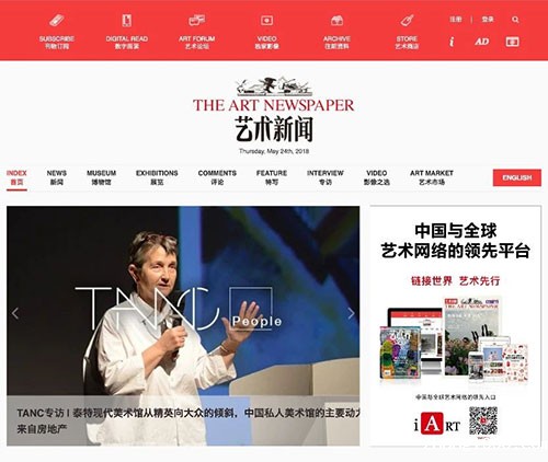艺术新闻是由现代传播集团与The Art Newspaper的国际出版方 Umberto Allemandi 出版社合作推出的。它细分了新闻、展览、博物馆、特写、艺术市场,非常有《周末画报》的影子。因为是艺术新闻中文版,所以报道内容更国际化。并且网页布局结构清晰,信息明确,阅读起来十分流畅。