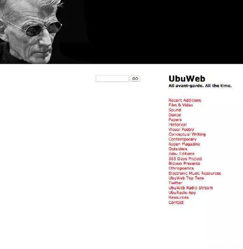 UbuWeb被我珍藏了很多年,它真的是一个超级百宝箱,由诗人肯尼思史密斯成立于1996年,是最重要和最大的线上当代艺术档案库,包含了极丰富的影像资料,先锋电影,音乐,写作。不管你是想初步了解还是更深入的研究学习,绝对是一个不能错过的网站。