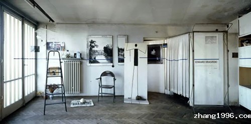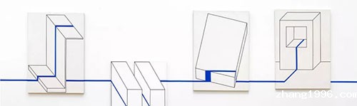 艺术家Edward Krasinski的三维动画作品,很好的展示了画面与空间的连接——那条被固定在高1.3米、19毫米宽的蓝色透明胶带是他用来规定地平线的准确方式。