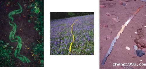 Andy Goldsworthy的大地艺术运动,提倡人们抛开局限风景画的方形画框,或公园内、政府机关前装饰用的户外雕塑与壁画,以自然为工具、材料、主题,用作品表现工业进步中被破坏的自然环境及因果报应。
