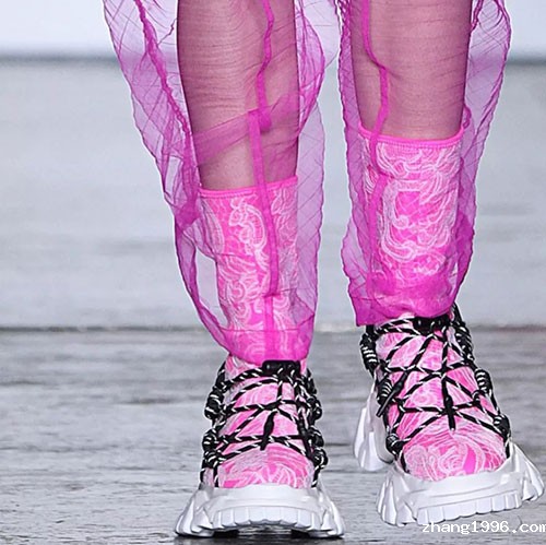 袜子的图腾设计依旧选用了中式传统的图腾,但是颜色选择了明媚高饱和度的荧光紫色,极具视觉冲击力。大红大绿明黄等等超高饱和度的颜色不也是“中式时尚“常常出现的画面嘛。