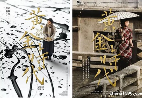 中国书法字体的运用。不同的笔锋和书写风格传递给读者的观感也是大有不同的,汉字的超高艺术境界非常值得我们去不断的尝试。《黄金时代》的书法字体,铿锵有力、笔锋尖锐,表达了电影主题中那个年代人物命运多舛却坚忍不拔的感叹。