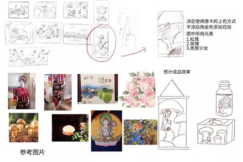 在藏族羌族地区有许多特色的产品类似松茸、高山玫瑰。但包装都不够美观,插画专业的曾同学则想为这些产品设计新的包装使其包装更加美观。