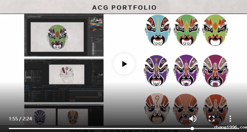 张同学将国画元素以及京剧中的脸谱融入到自己的项目中,她画了24张不同的脸谱,做成了一个具有中国风格的动画短片,最终斩获瑞格林动画专业offer!