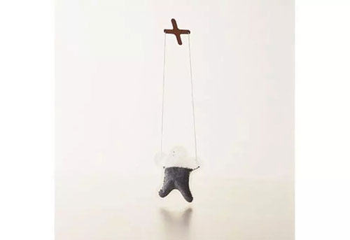 把茶包设计得像个提线木偶,茶包设计成人形,提手部分设计成木偶上控制板的形状。茶水被水浸泡之后膨胀起来,就会变成一个茶色木偶人。摆弄这个小茶包,就像玩提线木偶一样。