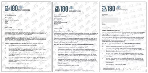 纯艺作为RCA的王牌专业,申请难度可想而知。但是梦想也是可以通过努力的汗水去实现的,纯艺工作室的邹同学、夏同学、马同学被皇艺的油画专业录取,杨同学和李同学则收到了雕塑专业的录取offer。