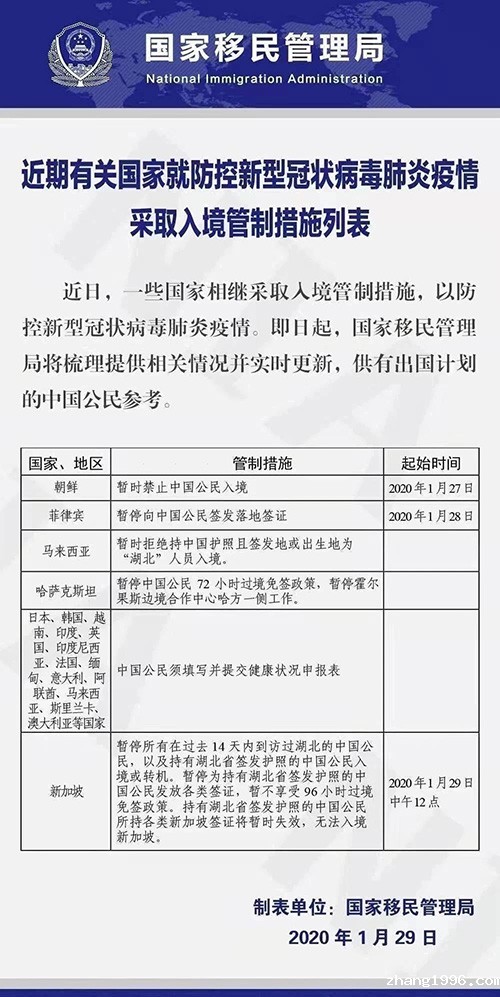 这两天,全国各地都发布了很多关于应对疫情变化的公文和措施预案。这里面对于留学生需要注意的有:雅思、托福以及GRE日前都通过官方渠道发布取消2020年2月份考试的通知,出入境签证、航班暂停,出入境人员必须进行健康申报,国家移民管理局也于昨天更新了一些国家采取的入境管制措施:
