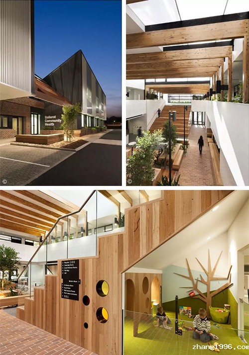 这是一个社区医院的设计案列:Ballarat Community Health Primary Care Center。Ballarat社区医疗中心坐落于澳大利亚的LUCAS,这个项目的特点之一就是故意淡化了“医院”这一主题。