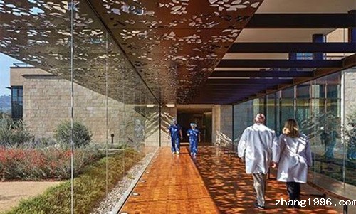 同时,设计师也可以思考如何利用不同的材质、纹理使整个空间达到一种视觉平衡,包括利用光影,明暗以及透光手段来处理空间的整体氛围,还可以将室外的景观也作为内部空间的点缀使用。这对于缓解病人对病魔的恐惧和压力是可以产生积极作用的。